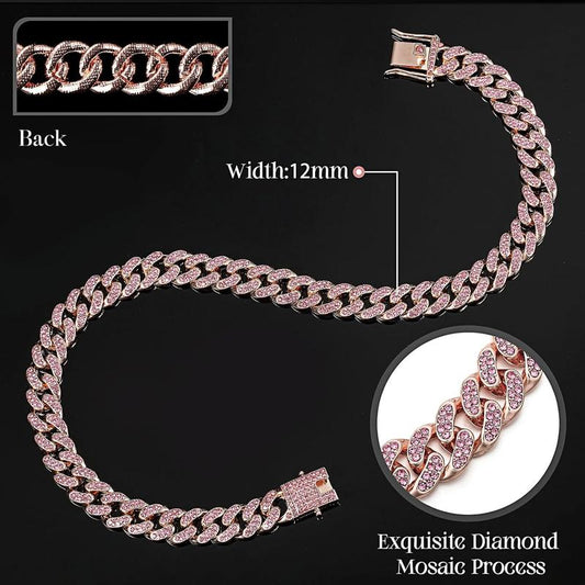 Dog Chain Collar Diamond Link Puppy Collar 12 Mm Wide Rose Gold Crystal Necklace Jewelry Accessories for Small,Medium Pets 8 Inch Durable & Stylish