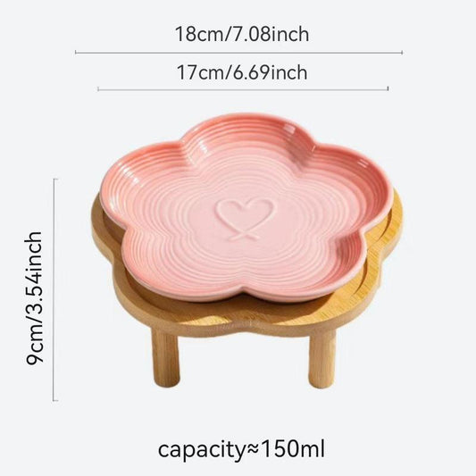 Flower Shaped Pet Feeding Bowl with wooden stand for cats and dogs